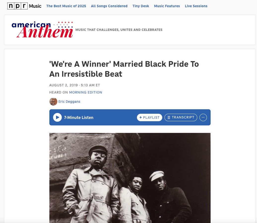 “Curtis could put (all) that to music,” Jackson told me then. “I could say it in in a speech or a sermon; Curtis could exact from that, rhythm and music. Music is the medium for the message, and ‘We’re a Winner’ is a part of that legacy.”