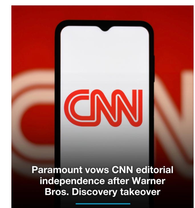 Will we see coverage like this in a few months, when Paramount has completed purchase of the company which owns CNN, Warner Bros Discovery?